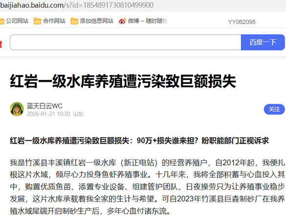 红岩一级水库养殖遭污染致巨额损失:90万+损失谁来担?盼职能部门正视诉求